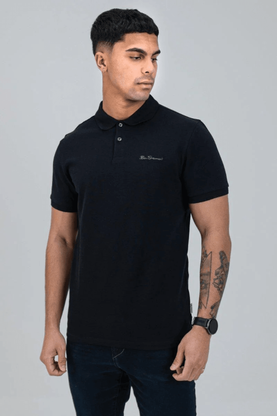 This short sleeve pique polo golfer features a classic two-button design and an embroidered Ben Sherman script on the chest. Made from 100% organic cotton, it offers a comfortable fit with a flat knit collar and short sleeves, perfect for a polished yet casual look.