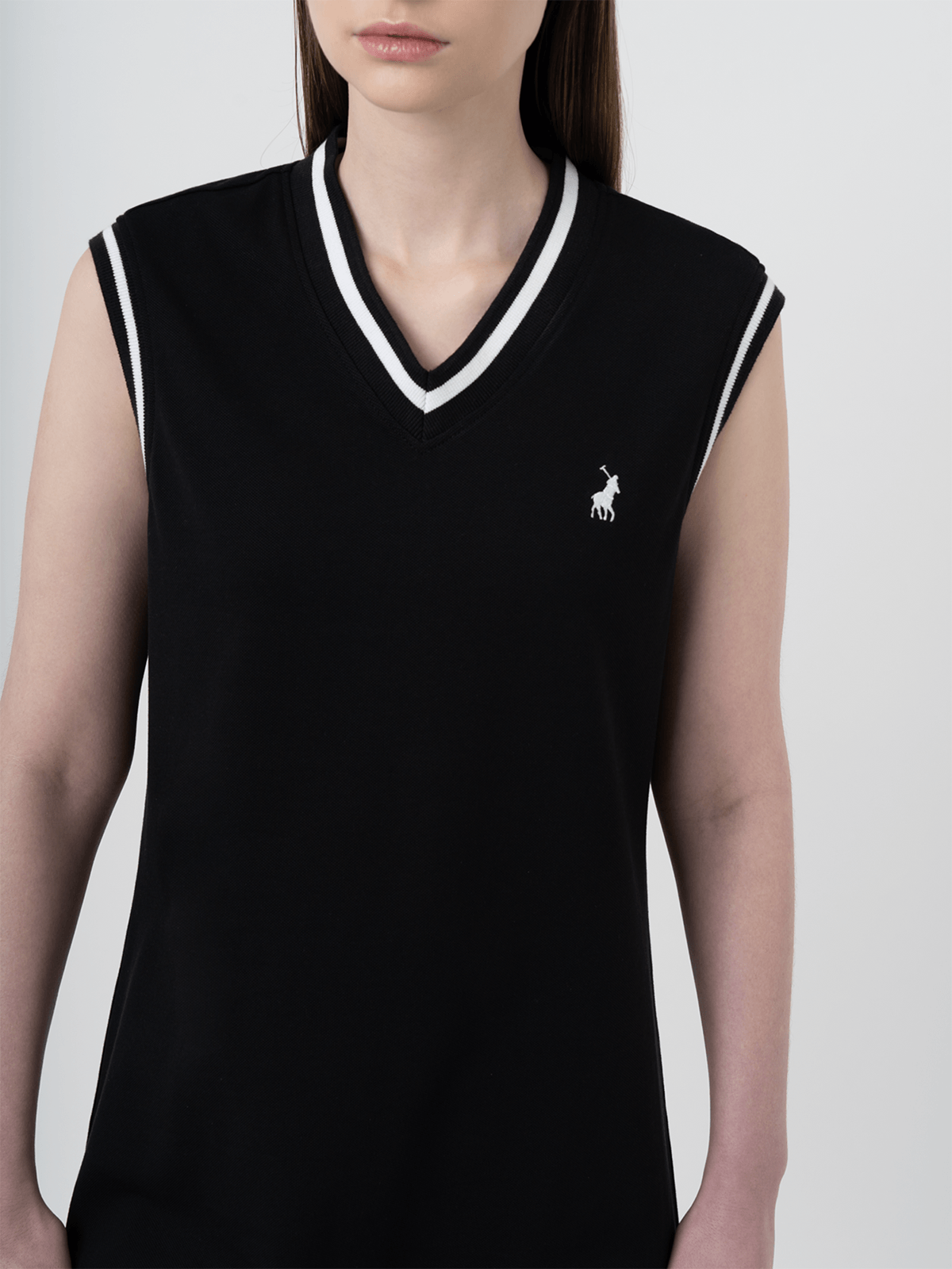 The Polo Tiisetso Sleeveless Dress is the perfect blend of sporty sophistication and everyday comfort. Crafted from soft, breathable cotton pique, this dress offers a flattering fit with a V-neckline and contrast rib trim for a touch of classic Polo style. The signature Polo Rider logo is embroidered on the chest, adding a refined finish to this timeless silhouette. Designed for effortless versatility, it transitions seamlessly from casual daywear to a polished off-duty look. Pair it with white sneakers or sandals for a chic, minimalist outfit that embodies Polo elegance.