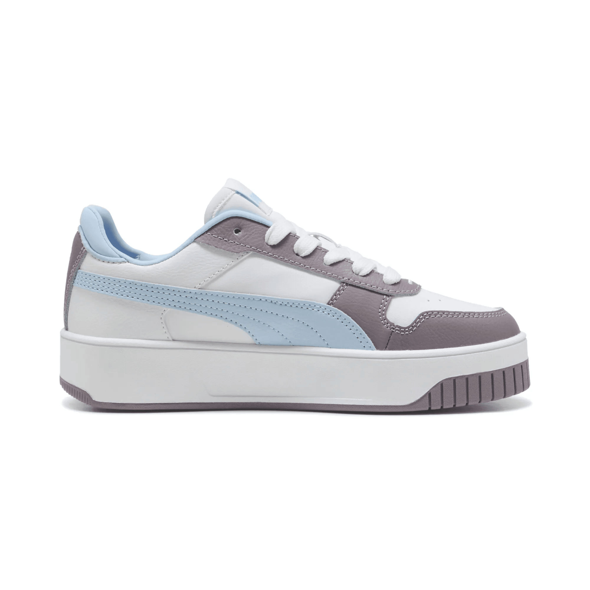 The Carina Street has a streetwear-inspired design in combination with a true platform profile, providing the perfect choice for everyday outfit. The full leather upper is streetwear inspired with toe overlay and basketball touch. It’s accented by a perforated vamp and a synthetic leather PUMA Formstrip. The highlight of the shoe is the new cupsole tooling though with a slightly elevated platform sole with texture interest in toe and heel area. The SoftFoam+ sockliner provides superior cushioning and optimal comfort for every step of your day.
