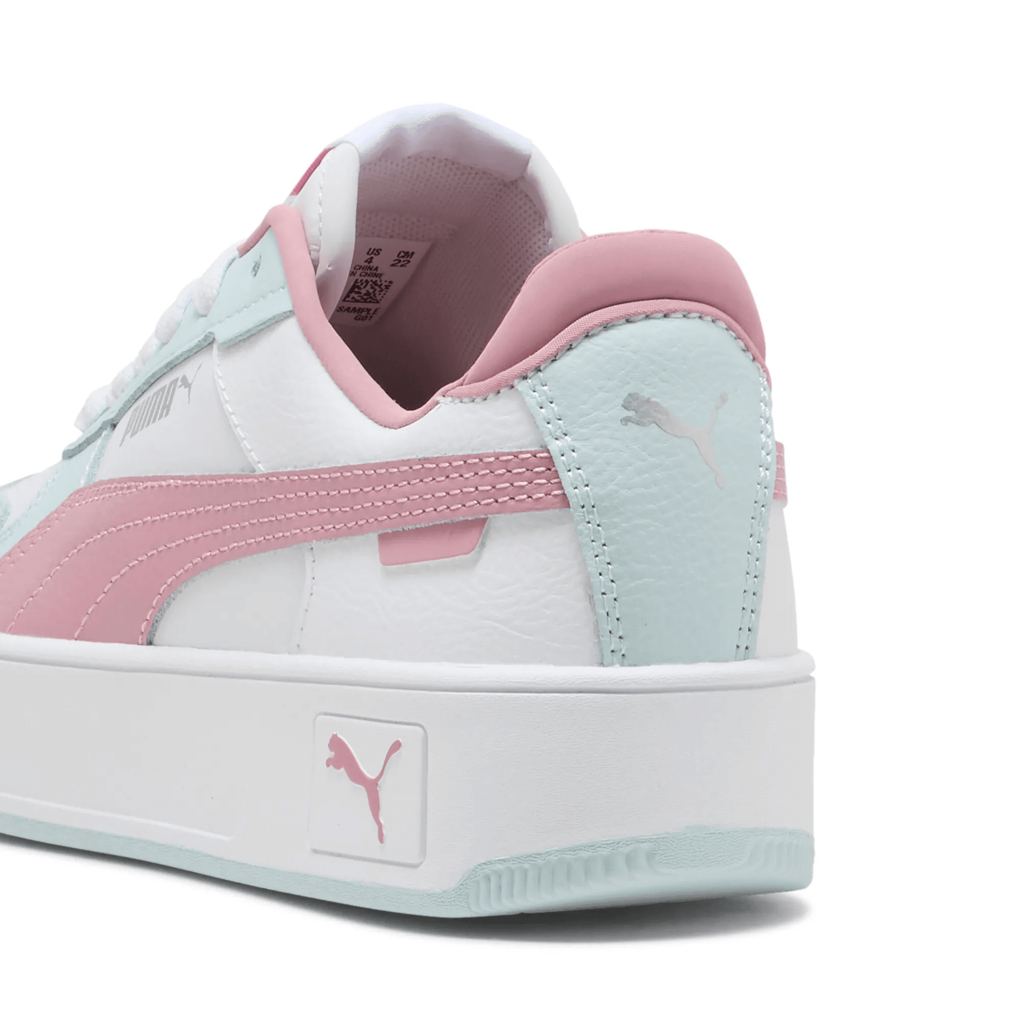 The Carina Street has a streetwear-inspired design in combination with a true platform profile, providing the perfect choice for everyday outfit. The full leather upper is streetwear inspired with toe overlay and basketball touch. It’s accented by a perforated vamp and a synthetic leather PUMA Formstrip. The highlight of the shoe is the new cupsole tooling though with a slightly elevated platform sole with texture interest in toe and heel area. The SoftFoam+ sockliner provides superior cushioning and optimal comfort for every step of your day.