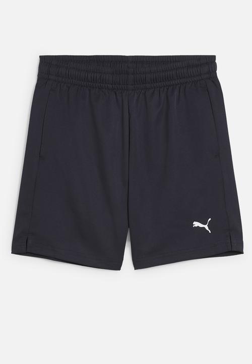 Keep him moving in comfort with the Boys Puma Essential Woven Shorts in Navy, designed for active days and laid-back moments alike. These lightweight boys shorts are made from breathable woven fabric, offering all-day ease whether he’s on the field, at the park, or relaxing at home. The elastic waistband with an internal drawcord provides a secure, adjustable fit to keep up with every adventure. Featuring a regular fit and clean, athletic design, they’re ideal for pairing with tanks, tees, or hoodies. The classic navy colorway adds versatility, while the iconic Puma logo gives them a sporty finish. Durable and easy to move in, these boys woven shorts are perfect for play, training, or casual wear. The Puma Essential Woven Shorts deliver everyday function, comfort, and style in one go-to pair.