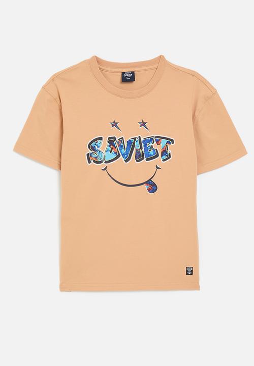 Level up his everyday look with the Boys Soviet Pixel T-Shirt, designed in a stylish earthy tone for laid-back street appeal. This short sleeve boys tee features a comfortable crew neck and a relaxed fit, perfect for casual days and weekend adventures. Made from soft, breathable cotton, it keeps him cool and comfortable all day long. The bold Soviet branding and pixel-inspired graphic across the chest brings a modern twist to a classic silhouette. Easy to pair with joggers, jeans, or shorts, this boys graphic T-shirt adds personality to any outfit. The earthy colourway gives it a grounded, on-trend vibe that works across seasons. With standout design and everyday comfort, the Soviet Pixel Tee is a go-to choice for boys who like their style with a bit of edge.