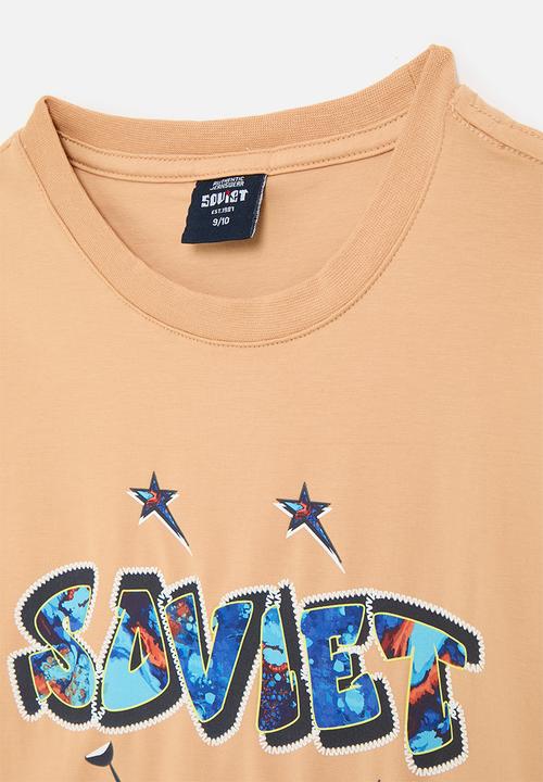 Level up his everyday look with the Boys Soviet Pixel T-Shirt, designed in a stylish earthy tone for laid-back street appeal. This short sleeve boys tee features a comfortable crew neck and a relaxed fit, perfect for casual days and weekend adventures. Made from soft, breathable cotton, it keeps him cool and comfortable all day long. The bold Soviet branding and pixel-inspired graphic across the chest brings a modern twist to a classic silhouette. Easy to pair with joggers, jeans, or shorts, this boys graphic T-shirt adds personality to any outfit. The earthy colourway gives it a grounded, on-trend vibe that works across seasons. With standout design and everyday comfort, the Soviet Pixel Tee is a go-to choice for boys who like their style with a bit of edge.
