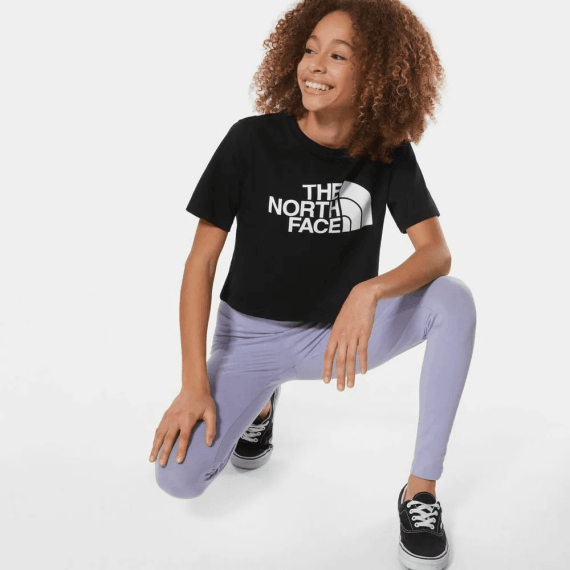 The North Face Girls’ Crop Easy Tee is a stylish and comfortable choice for everyday wear. Featuring a trendy cropped cut and classic crew neck, it offers a modern silhouette with easy layering potential. Made from soft, breathable fabric, it keeps her comfortable all day long. Bold branding across the chest adds a sporty, standout touch to the sleek black design. Its versatile color pairs effortlessly with leggings, jeans, or shorts for a variety of looks. Lightweight and durable, this tee is perfect for school, play, or casual outings. Combining comfort and style, it’s a must-have piece for any active girl’s wardrobe.