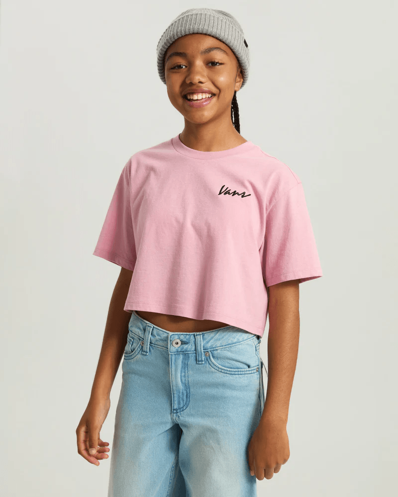 This short-sleeved, crew neck, cropped T-Shirt offers a trendy update on the classic Vans tee, with revisited branding on the left chest and a relaxed fit.